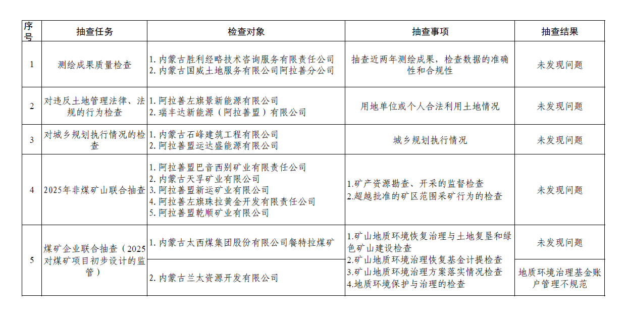阿拉善左旗2025年度自然资源监管领域“双随机、一公开”抽查结果公示