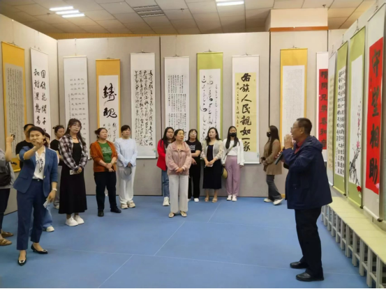 此次联合观展活动,不仅丰富了干部职工们的文化生活,提升了艺术修养,更在意识形态领域构建起坚实的思想阵地。通过书法展中蒙汉文化交融的艺术表达,大家深刻认识到中华文化多元一体的本质特征,进一步增强了对马克思主义民族观、历史观、文化观的认同。在新时代文化建设征程中,阿左旗图书馆将以更高的政治站位,主动承担起意识形态工作的主体责任,深挖文化资源中的民族团结元素,创新开展各类主题活动,用文化浸润心灵、用艺术凝聚共识,筑牢抵御错误思潮的思想防线,切实将铸牢中华民族共同体意识融入文化服务全过程,为巩固和发展平等团结互助和谐的社会主义民族关系、维护意识形态安全、实现中华民族伟大复兴中国梦持续贡献文化力量 。